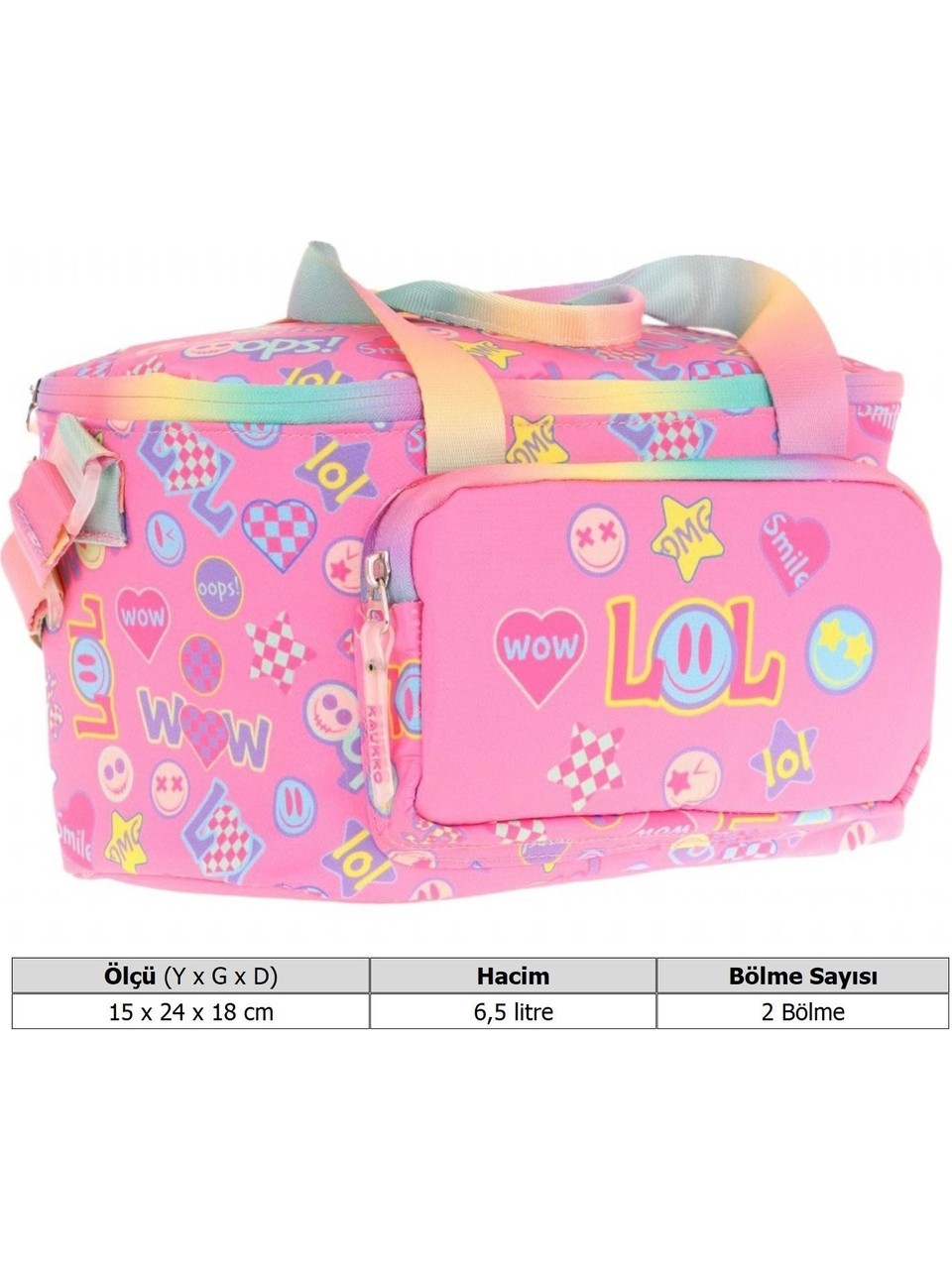 Türkiye'de Karınca Çanta tarafından Kaukko lisansı ile üretilen bu şık ve fonksiyonel beslenme çantası, okul ve piknik gibi günlük maceralarınız için mükemmel bir yol arkadaşı! Pembe renk ve lol baskılı tasarımıyla, kız çocuklar için tasarlanmış bu çanta, tarzı ve pratikliği bir araya getiriyor.